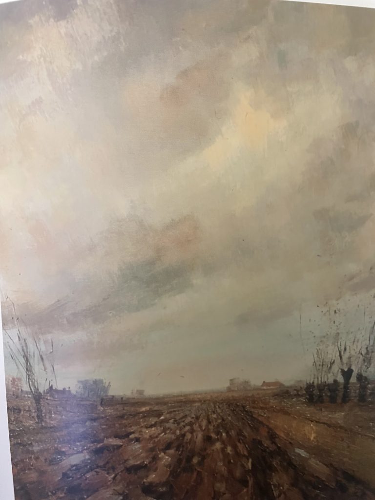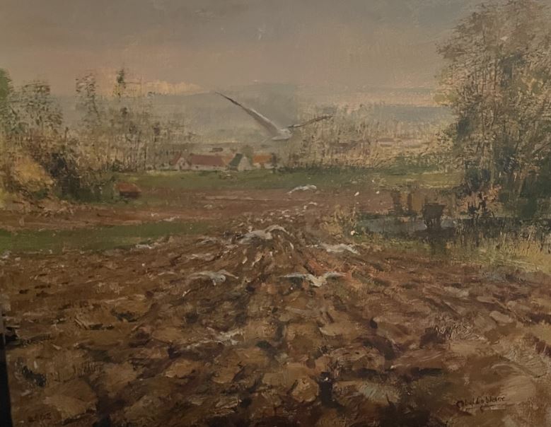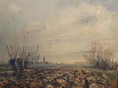 La terre flamande a souvent été source d’inspiration pour mon père. Il a eu envie d’utiliser différents formats pour peindre notre bonne terre de Flandres, que ce soit du 40F comme le tableau de la capsule de muselet don il s’agit aujourd’hui ou du 5P comme celui de cette petite toile.